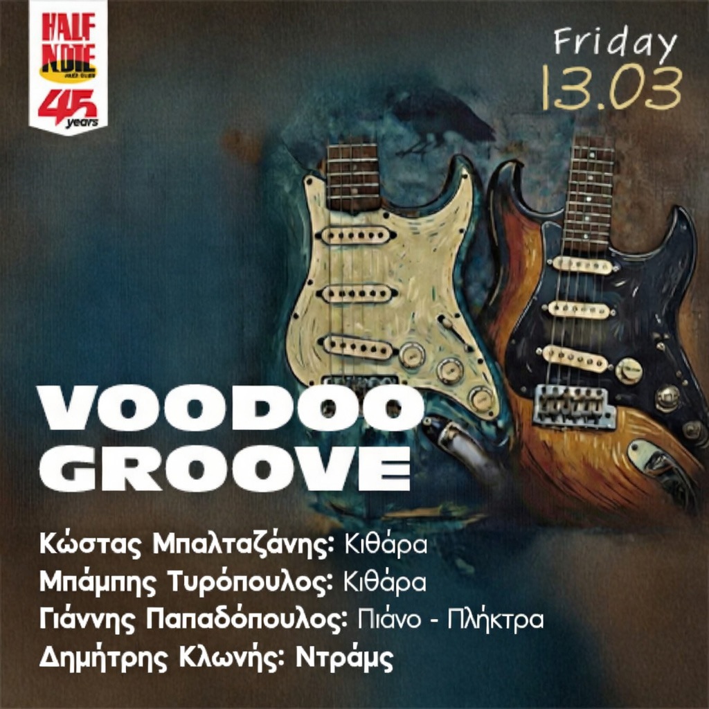 Το Half Note Jazz Club υποδέχεται τους Κώστα Μπαλταζάνη, Μπάμπη Τυρόπουλο, Γιάννη Παπαδόπουλο και Δημήτρη Κλωνη την Παρασκευή 13 Μαρτίου, για μια ξεχωριστή βραδιά όπου η jazz συναντά τα blues και η soul “κουμπώνει” ιδανικά με το groove και τον αυτοσχεδιασμό.